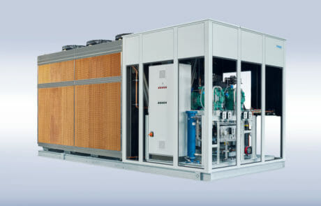 Mit einem GWP-Wert von 0 ist Ammoniak (NH3, R717) ideal für nachhaltige und langfristige Kältelösungen geeignet. Die hervorragenden Wärmeübertragungseigenschaften von Ammoniak machen es zur bevorzugten Wahl für eher hohe Leistungen in der Großkälte und Industrie. In der Regel dienen diese zur Kaltwasser/-sole Erzeugung und versorgen beispielsweise Produktions- und Lagerprozesse sicher mit Kälte.